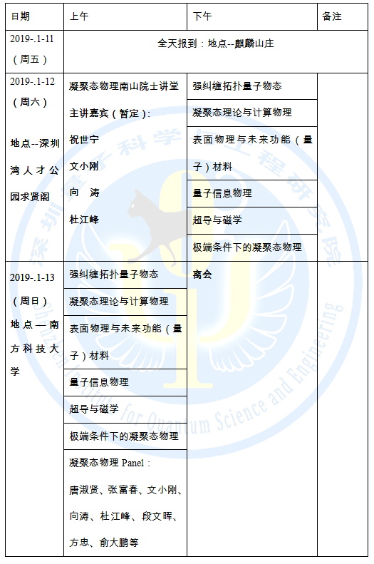 凝聚态物理“南方论坛”/物理系主任论坛暨凝聚态物理“南山院士讲堂” 2019年 第二轮通知