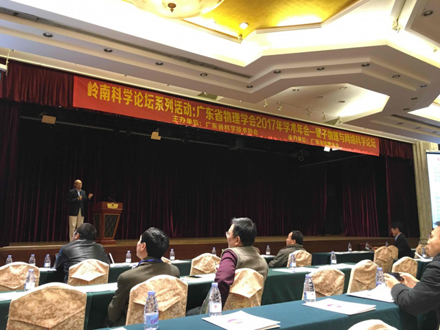 9日下午举行“岭南科学论坛系列活动”—量子物理与网络科学论坛,论坛由广东省科协技术协会主办,本学会承办。会议特邀了5位著名物理学家:王恩哥院士、孙昌璞院士、汪秉宏教授、汪子丹教授、和朱诗亮教授作主题报告。他们的报告题目分别是“水的全量子化研究”、“量子力学诠释问题”、“复杂系统研究初探——当前复杂系统的几个研究方向”、“拓扑金属和量子模拟”、和“量子计算简介”。
