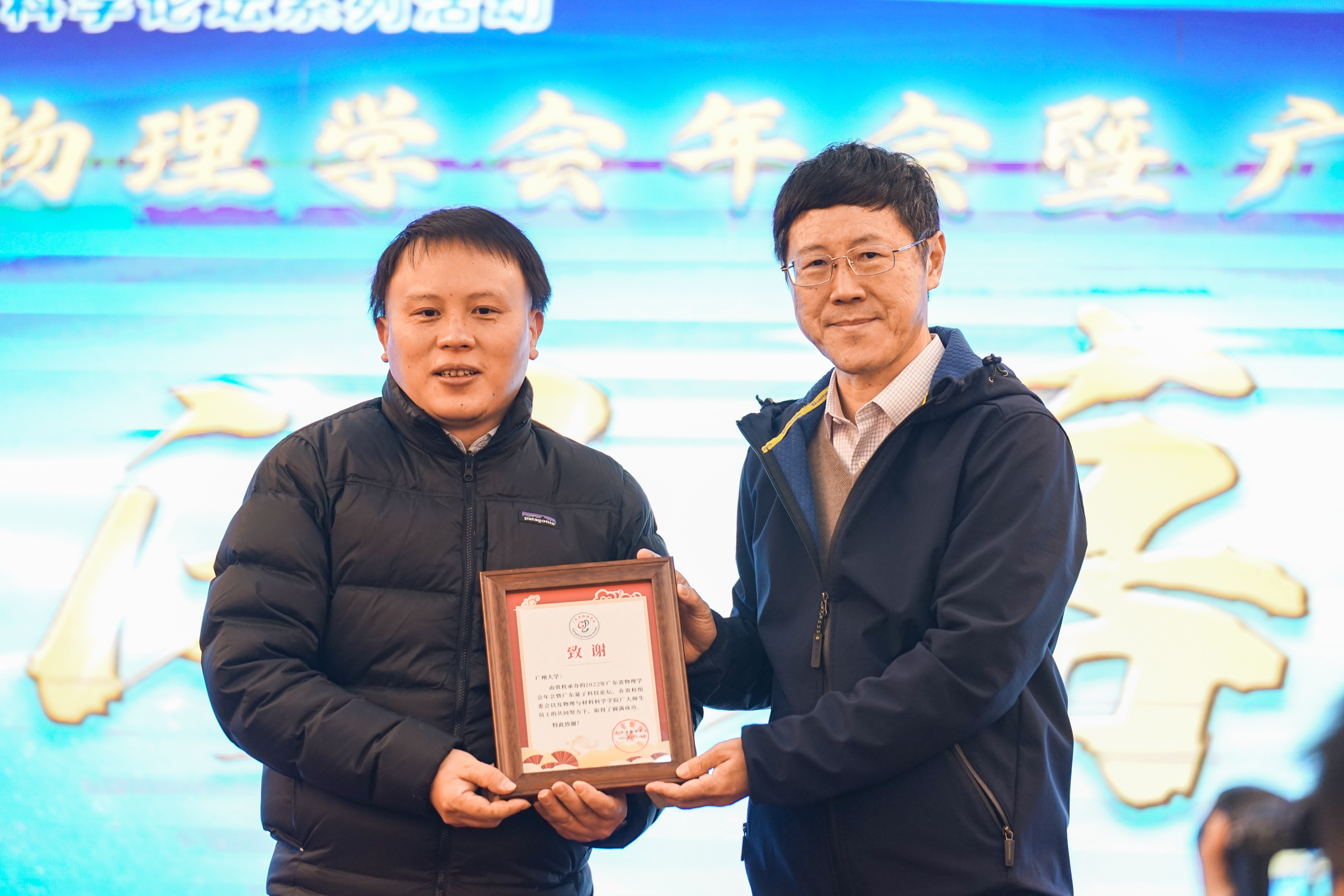 (王彪理事长为承办单位广州大学颁发致谢书)