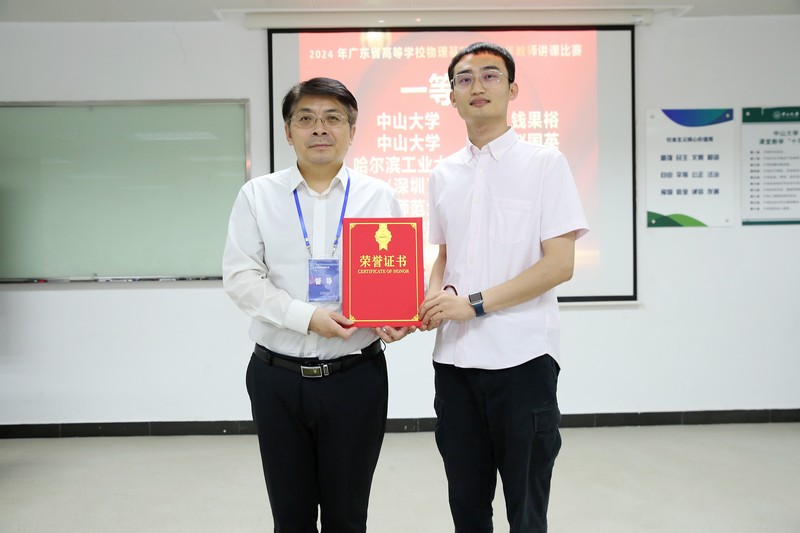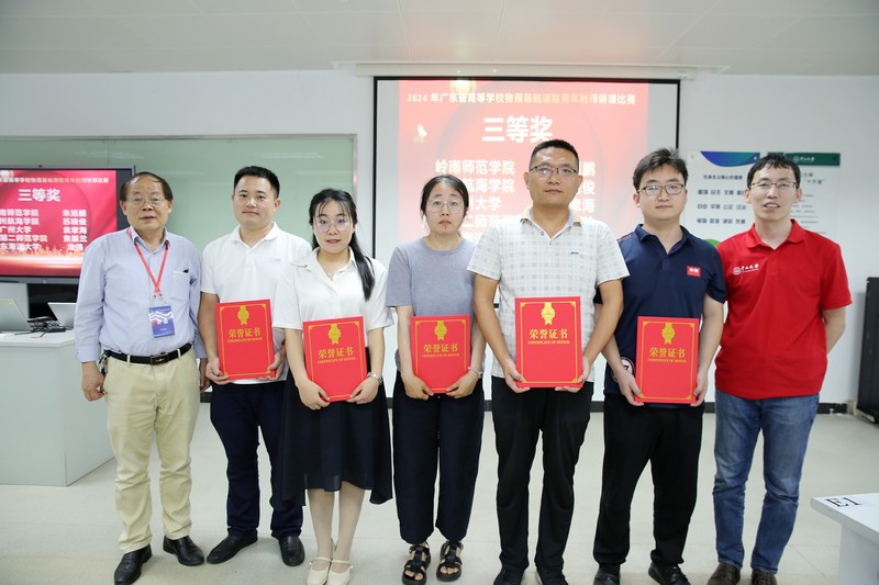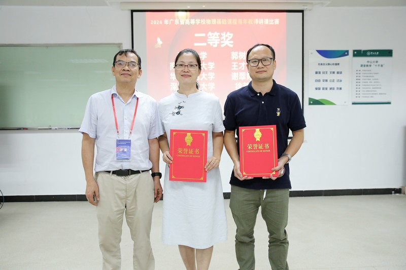 来自中山大学、华南理工大学、哈尔滨工业大学(深圳)、北京师范大学(珠海)、南方科技大学、华南师范大学、暨南大学等十八所高校的19位青年教师参加了比赛。比赛中,参赛教师结合各种不同的教学方法,模拟实际课堂情境,将参赛作品一一呈现。经评委评议,最终产生一等奖4名,二等奖6名,三等奖9名;同时产生了最佳互动奖、最佳教风奖和最佳PPT奖各1名。荣获一等奖的分别是中山大学钱果裕讲师和赵国英副教授,哈尔滨工业大学(深圳)钟瑞实验师,北京师范大学(珠海)符中秋实验师;二等奖分别是南方科技大学王才林高级实验师,五邑大学胡林顺实验师,深圳技术大学徐芳副教授,深圳大学郭树青讲师,华南农业大学曾应新讲师和华南师范大学谢翠婷实验师;三等奖分别是岭南师范学院朱旭鹏副教授,广州航海学院苏晓俊讲师,深圳职业技术大学杨玮民讲师,惠州学院张燕副教授,暨南大学赵志娟副教授,华南理工大学侯冬曼实验师,广州大学袁聿海副教授,广东第二师范学院焦振兰助教,广东海洋大学詹强助教;最佳互动奖是深圳技术大学徐芳副教授;最佳教风奖南方科技大学王才林高级实验师;最佳PPT奖深圳大学郭树青讲师。