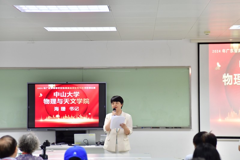 最后,开云登陆入口党委书记海珊同志代表承办方感谢广东省物理学会的信任,感谢评委及督导专家的辛勤付出和细心指导。对大赛中取得佳绩的各位青年教师表示热烈的祝贺。希望通过比赛实现“以赛促教、以赛促学、以赛促研”的目标,为全面提升人才培养质量打好坚实的基础;各位青年教师借此机会广泛学习,学以致用,提升教学水平和质量。世纪中大,山高水长。在中山大学百年华诞之际,各位评委专家和青年教师相聚在此,海珊书记衷心祝愿讲课比赛越办越好,各位教师在教学上硕果累累、科研上捷报连连,期待未来再次相聚。