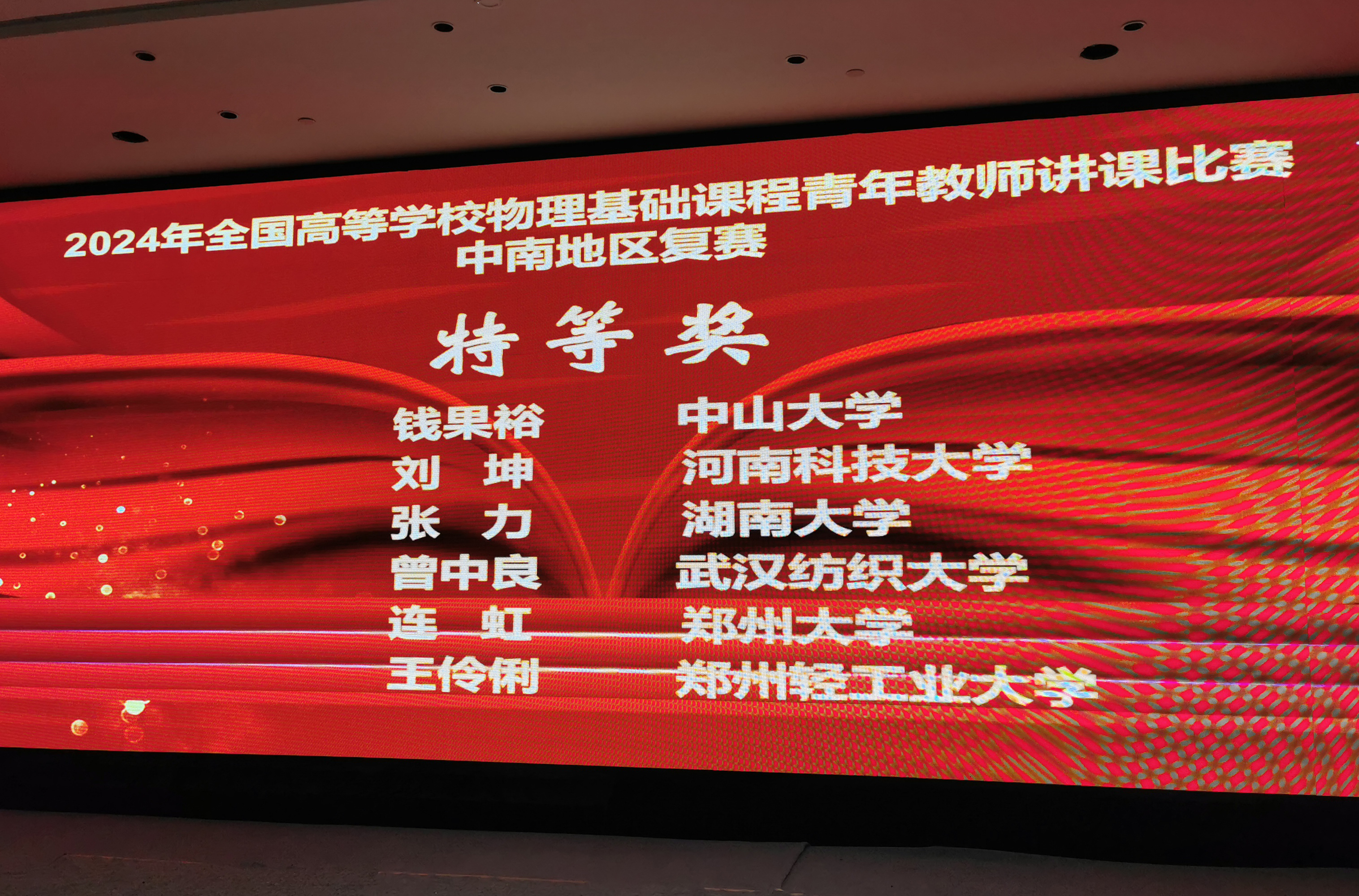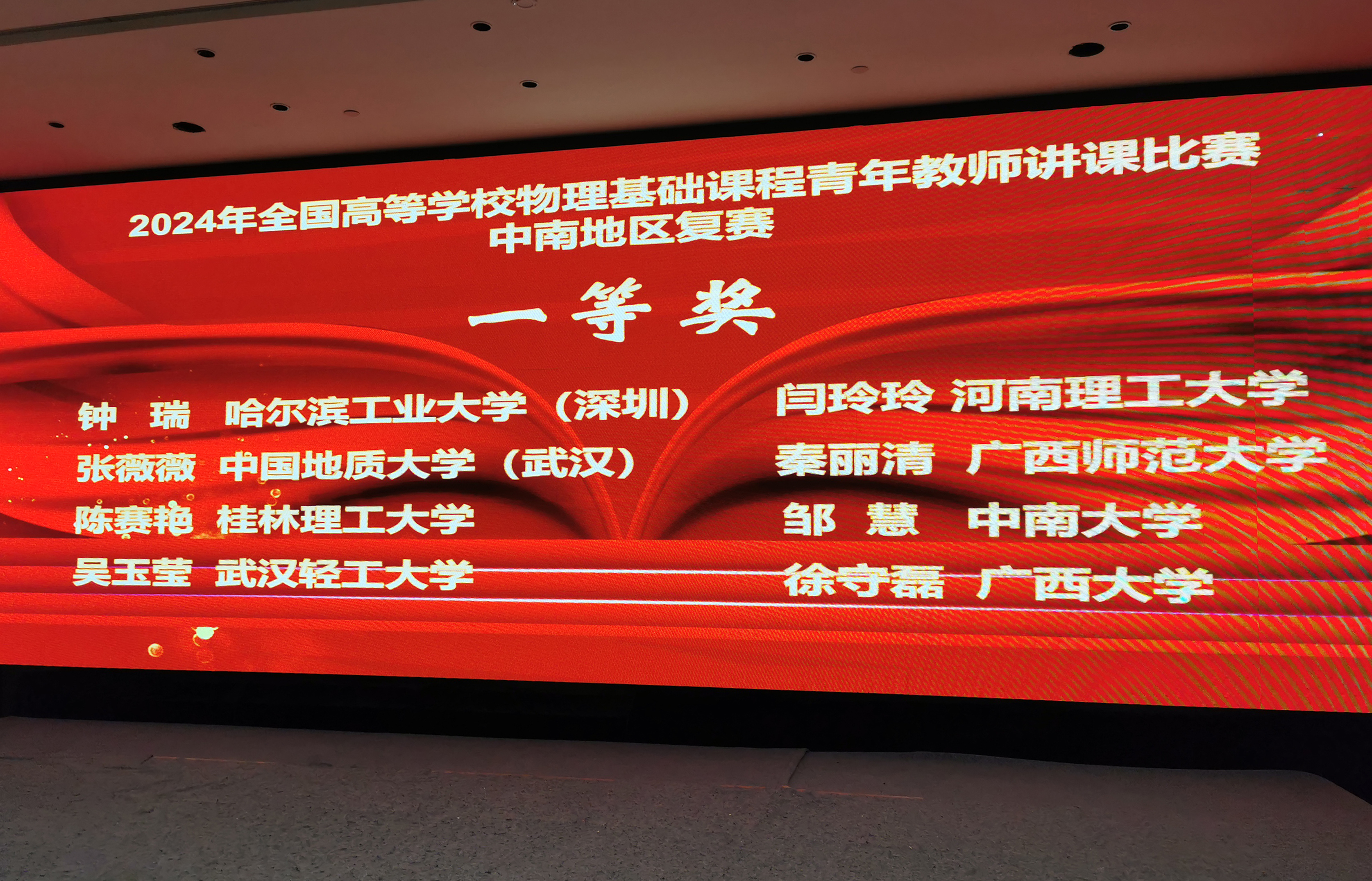 2024年全国高等学校物理基础课程青年教师讲课比赛 中南地区获奖名单