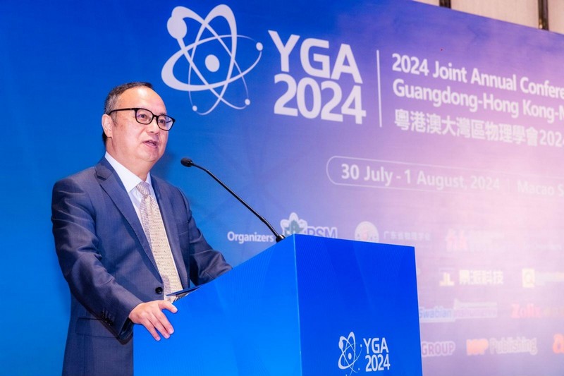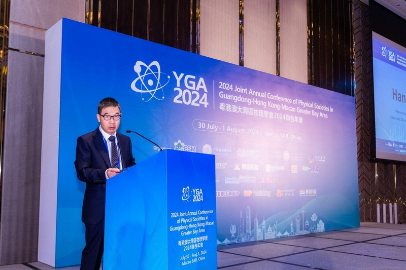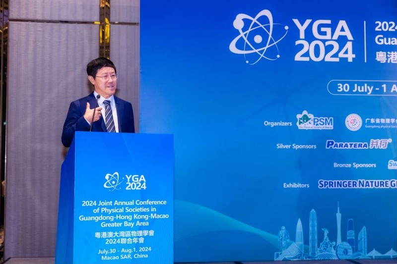 发布时间:2024-08-09 作者:由广东省物理学会、香港物理学会、澳门物理学会联合主办,澳门大学承办的“粤港澳大湾区物理学会2024年联合年会”于2024年7月29日至8月1日在澳门新濠影汇酒店举行,旨在加强国内外物理学界的沟通和粤港澳大湾区在物理学领域的合作。此次盛会吸引了来自粤港澳大湾区和国内其它地区的物理学领域各学科的专家学者、业界人士320余人。