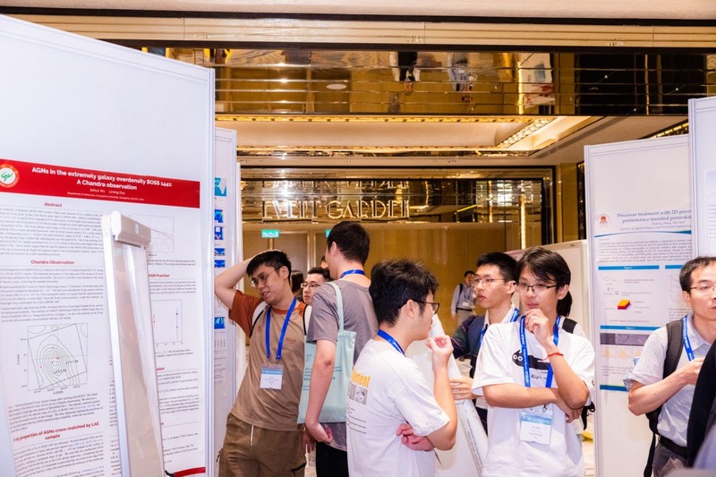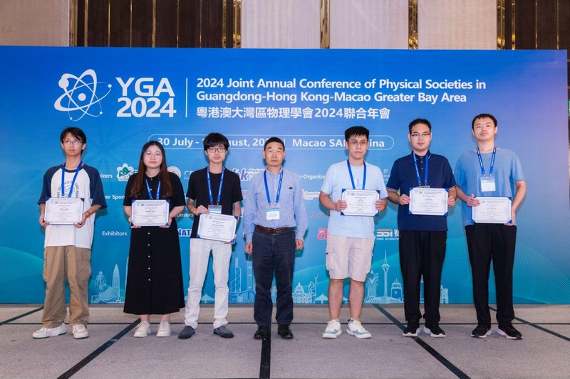 本次会议共收到张贴报告46份,这些报告展示了近年来粤港澳大湾区各高校及研究机构师生及研究人员在物理学科的研究成果。会议评选出6个优秀张贴报告给予奖励,包括:澳门大学锐端的“Colloidal Nanoplatelets-Based Soft Matter Technology for photonic interconnected Networks“、澳门大学陈鸿飞的”First principles study of precursor components affecting crystallization and performance in lead halide perovskite“、中山大学在读博士生莫一杰的”Boundary flat bands with topological spin textures protected by subchiral symmetry“、中山大学在读硕士生祁开元的“Theoretical study of multi-magnon excitations in RlXS spectra of 2D cuprates antiferromagnets”、广州大学在读硕士生吴佳华的“AGNs in the extremely galaxy overdensity BOSS 1441:A Chandra observation”、香港中文大学在读硕士生陈力臻的“Different Dynamical States of Spontaneous Activityof Neurons in a Network”。
