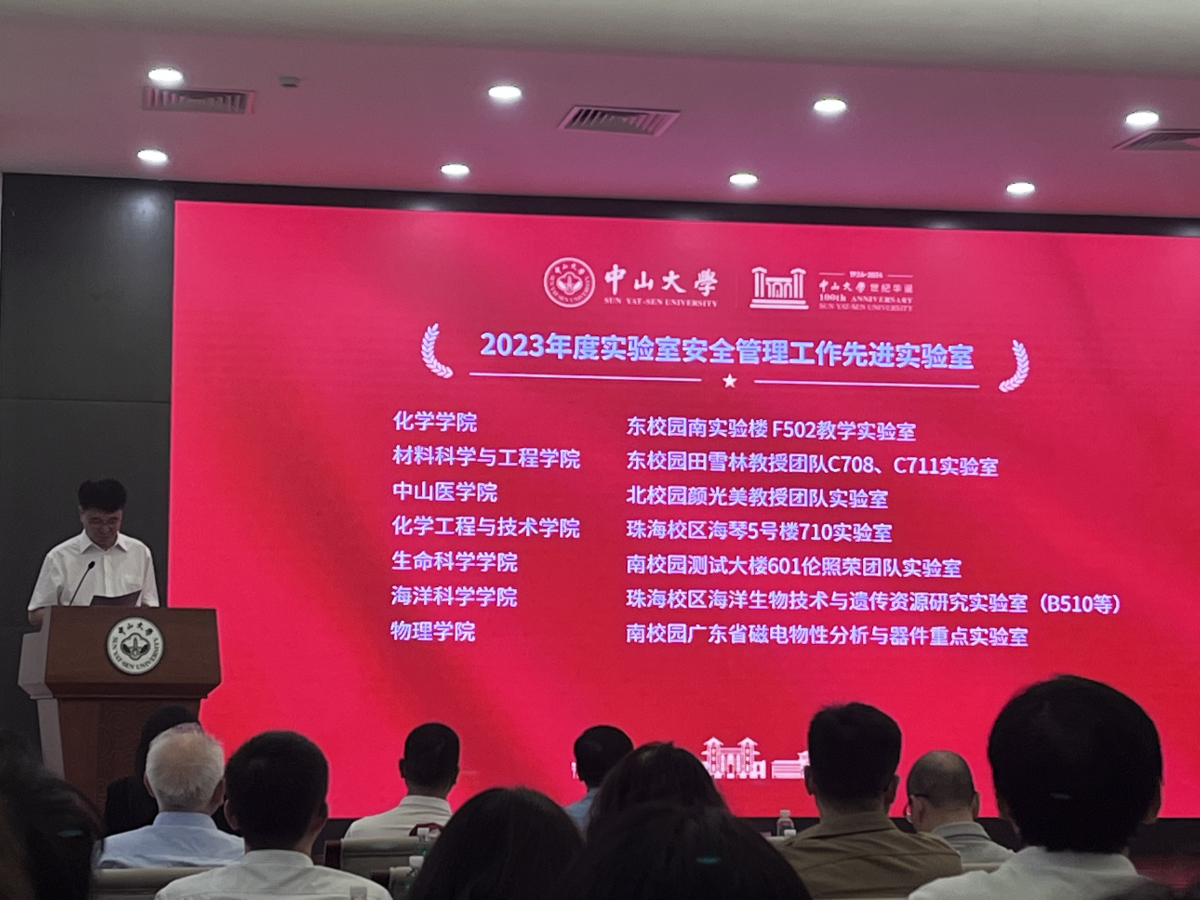 本实验室荣获中山大学2023年度实验室安全管理工作先进单位