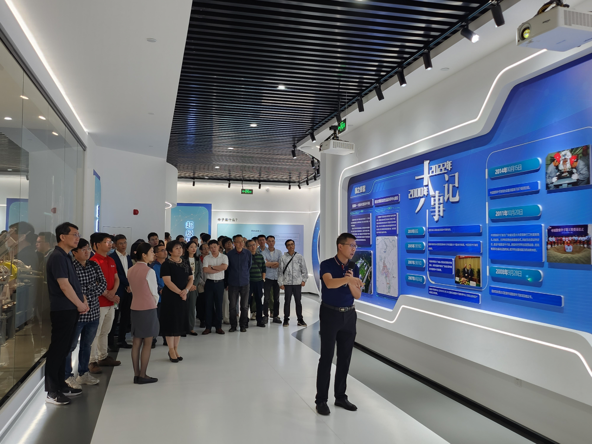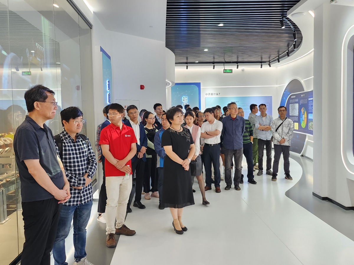 揭幕仪式后,工作人员带领省重点实验室的师生们来到中国散裂中子源科普展厅,详细介绍了我国高能物理发展的历史和艰苦奋斗的历程,也让师生们更好地了解科研基地的全貌和历史积淀。接着,工作人员详细介绍了中大谱仪的研发背景、功能特点以及在各种领域研究中的应用。
