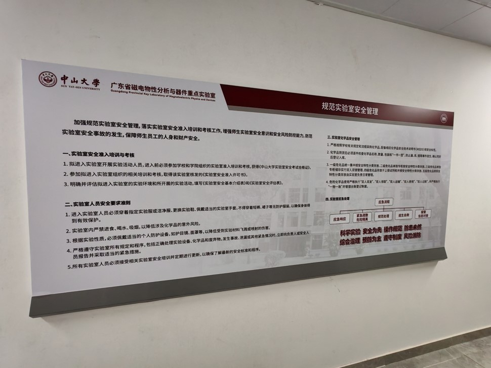 2023年,在学校相关职能部门的指导监督以及各研究团队师生和管理人员的共同努力下,广东省磁电物性分析与器件重点实验室(以下简称“本实验室”)在2023年度的安全管理工作中取得了一定的成效。经学院推荐,学校专家组现场评审,本实验室被评为中山大学2023年度实验室安全管理工作先进实验室。同时,实验室工程师姜赫荣获中山大学2023年度实验室安全管理工作先进个人称号