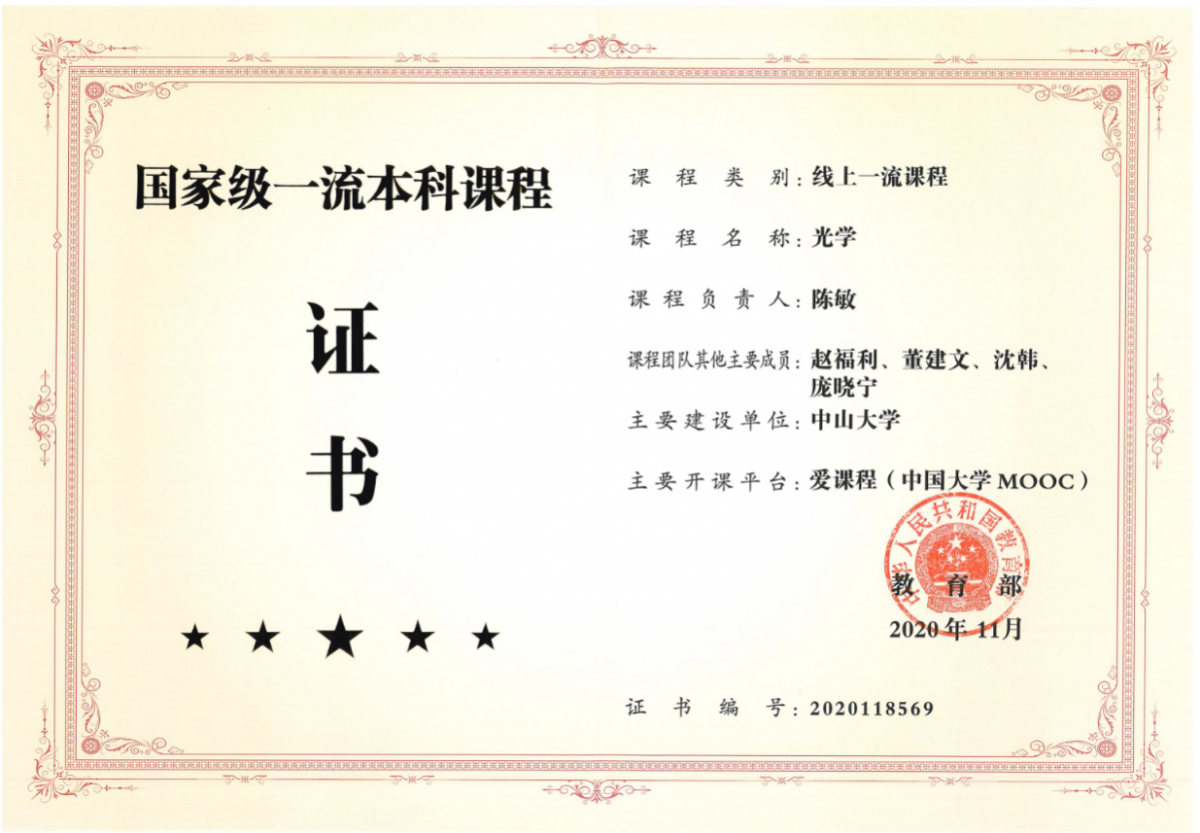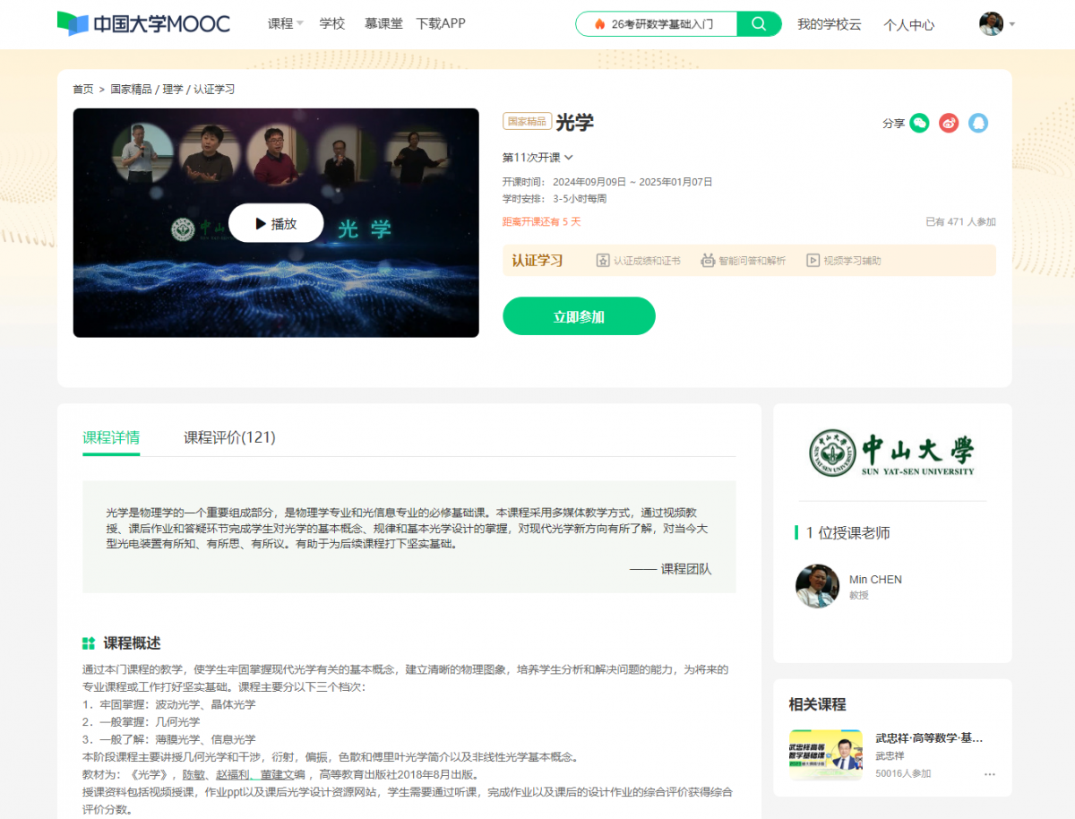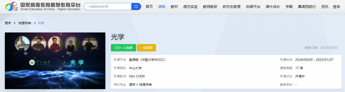 ▲国家智慧教育平台上的中山大学线上一流课程《光学》