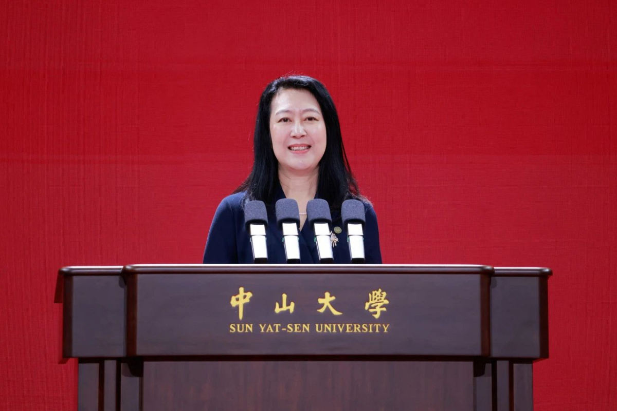 校友代表、美国国立眼科研究所科学家陈之昭在致辞中回顾了在康乐园成长、学习的时光。她表示,母校的发展一直是广大校友牵挂在心的事情。这次重返母校,亲眼目睹了母校的巨大变化,感受到青年学子的朝气蓬勃,内心十分欣喜。作为中山大学的“儿女”,共饮珠江水、同沐白云风,以身为中大校友为荣、愿为母校的发展添砖加瓦。她同时向海内外校友和在校师生员工发出倡议,希望大家在各自的领域中推陈出新、引领潮流、造福乡梓百姓。