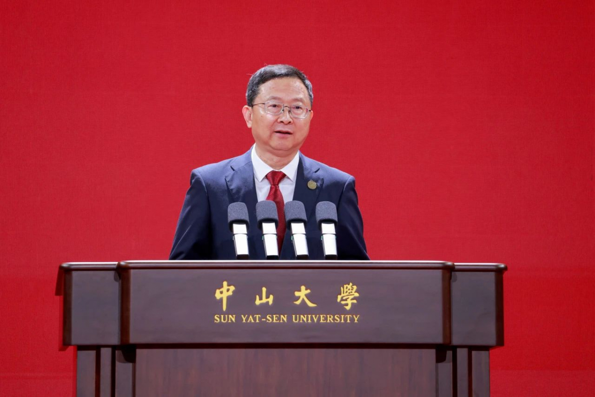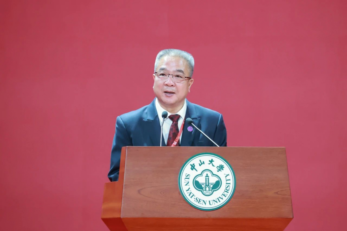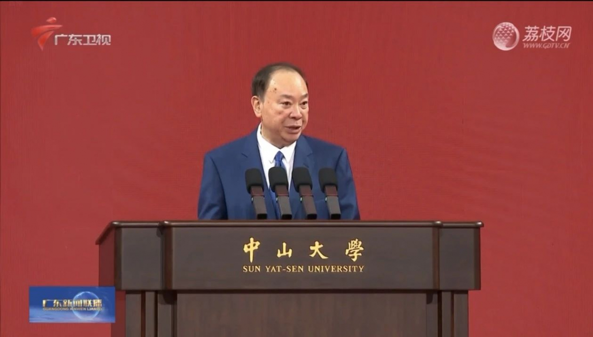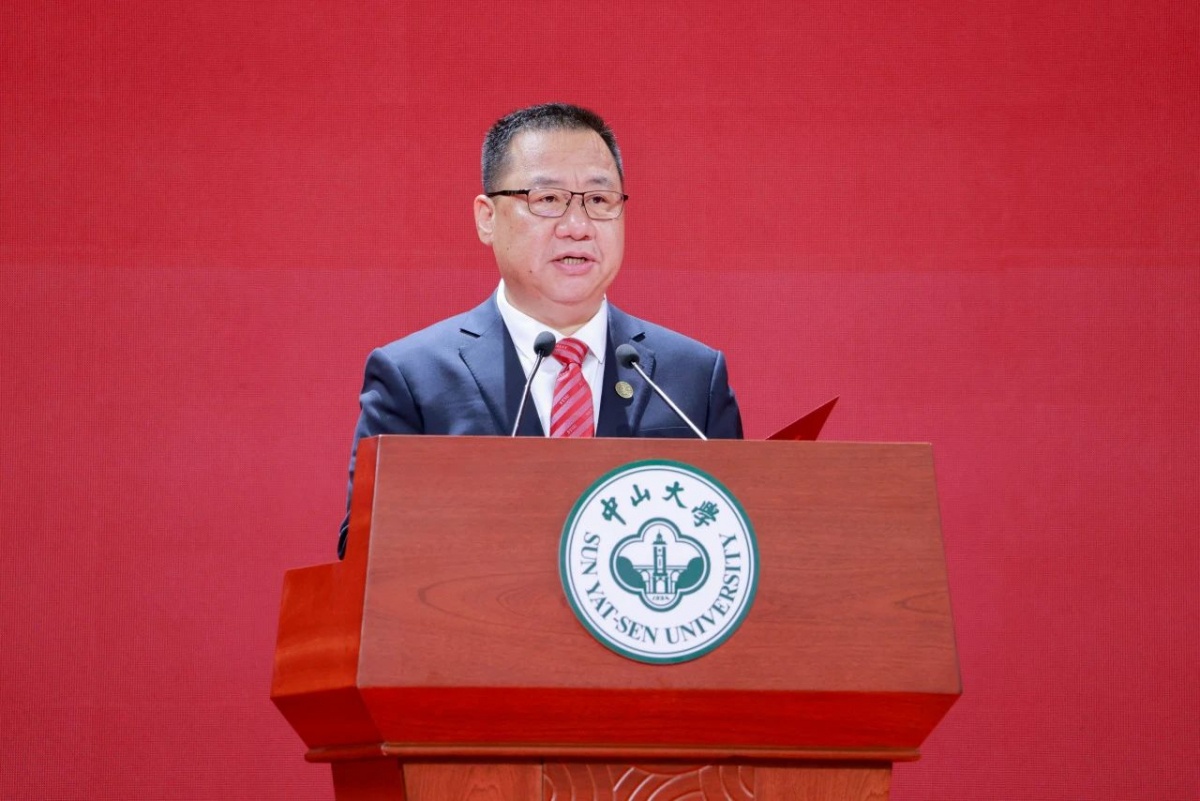 吾校矗立谱华章,山高水长启新程。中国科学院院士、中山大学校长高松在大会上致辞。