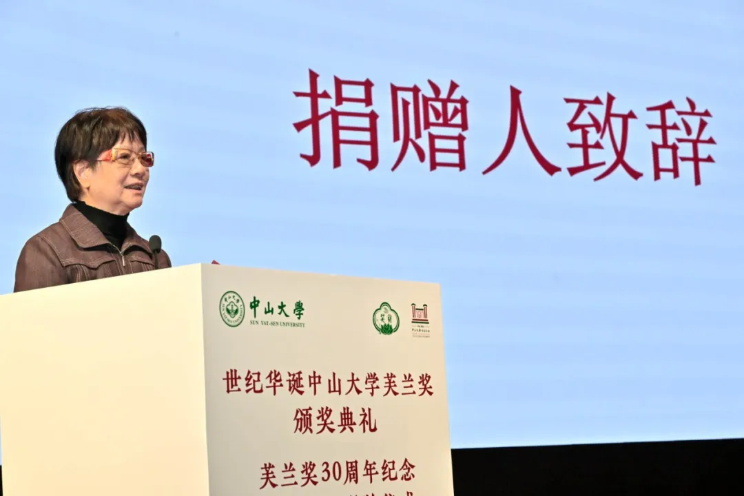 ▲刘修婉学长在世纪华诞·中山大学“芙兰奖”颁奖典礼上致辞