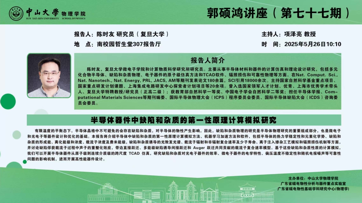 报告题目:半导体器件中缺陷和杂质的第一性原理计算模拟研究