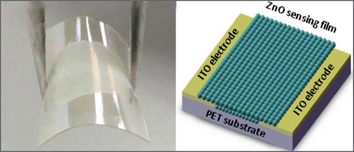 近年来,由于人们在原位、实时的健康监测方面的广泛需求,可穿戴电子设备如智能手表、智能眼镜、智能服装等等已成为当前和未来微电子和光电子技术发展的一个重要方向。气敏传感器是可穿戴电子设备的一个重要组成部分,可以用于检测和防控人类生存环境中的有毒、易燃、易爆等有害危险气体对人体的伤害。然而,为了适用于可穿戴电子设备,所需要的气敏传感器必须是柔性、透明的,并且能在室温下工作,这显然是对传统的气敏传感器提出了严重挑战。最近,杨国伟教授研究组的郑照强博士生发展了一种简单、灵活及低成本的纳米气敏传感器组装技术,采用商用ZnO纳米颗粒组装出国际上第一个光控的柔性、透明、能够在室温下工作的乙醇气敏传感器。该传感器在室温下不仅具有快速、良好的光响应,并且在紫外光照射下对乙醇显示出较高的气敏传感响应。同时,它在可见光谱范围内的光透过率超过了62%,而且即使器件弯曲到90度,它的气敏传感性能依然能够保持不变。这些结果表明所组装的气敏传感器可以很好地应用于可穿戴电子设备。这项研究成果发表于2015年6月16日出版的Scientific Reports 5 (2015) 11070。