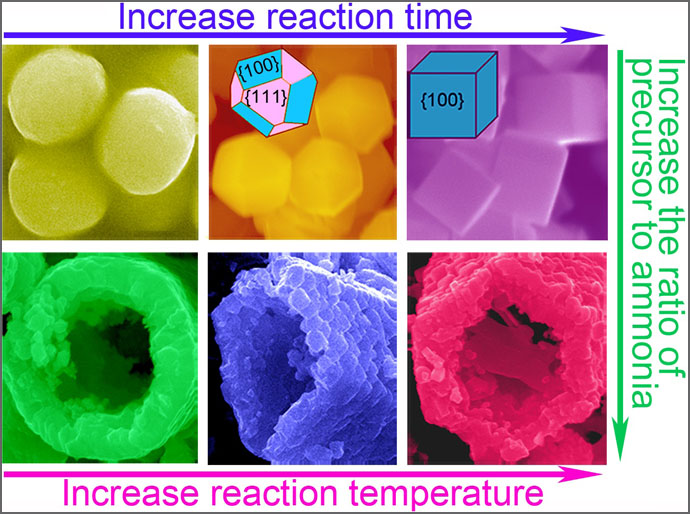 最近由理工学院、光电材料与技术国家重点实验室和中山大学太阳能系统研究所刘勇副教授等研究人员针对NixCo3-xO4电极材料研发出一系列有趣的微纳结构,如球形颗粒,暴露{100}和{111}面的多面体和暴露{100}面的立方体,并在此基础上进一步合成出由球形颗粒基元构筑的圆管,由多面体基元构筑的四方管,及由立方体基元通过连续的孪晶构筑的具有准单晶结构的六边形管。研究表明这种准单晶结构能提供连续的电子传输通道并可以抑制NixCo3-xO4电极材料的粉化。在相对高的电流密度(0.8A/g)充放电下,由该准单晶NixCo3-xO4电极材料制备的电池循环1000次后放电容量仍可达到590 mAh/g。该研究成果于6月24日发表在Nature Publishing Group出版的Scientific Reports 5 (2015) 11584 (DOI: 10.1038/srep11584),论文的主要实验工作由周虞硕士完成。上述工作得到了国家自然科学基金、国家重大科学研究计划及光电材料与技术国家重点实验室的支持。