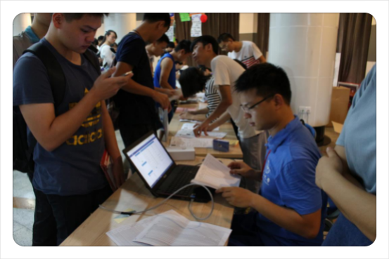8月26日,全校新生报道。一大早,在熊德龙活动中心,远远便可瞧见物理学院的老师和同学们忙碌的身影。学生志愿者们带领着新生办理每一项入学手续,并向他们耐心地讲解,提供各种咨询。学院党委书记杨东华老师、党委副书记潘金山老师、团委书记仰晓莉老师和研究生辅导员徐颖老师来到新生报到现场,详细了解了迎新工作的进展情况。当天已有97%的新生完成了报到手续,有来自全国各地的239名优秀学子(含硕士49人,博士生28人)加入到物理学院这个大家庭。