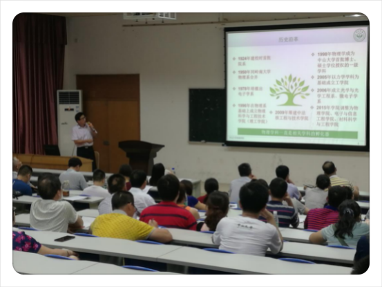 同时,我院组织了一系列新生教育活动——专业学习介绍、学籍管理教育、团学教育、心理健康教育、安全教育、学生工作手册测试等等。这些活动与讲座让新同学们进一步更好了解中山大学、了解物理学院。