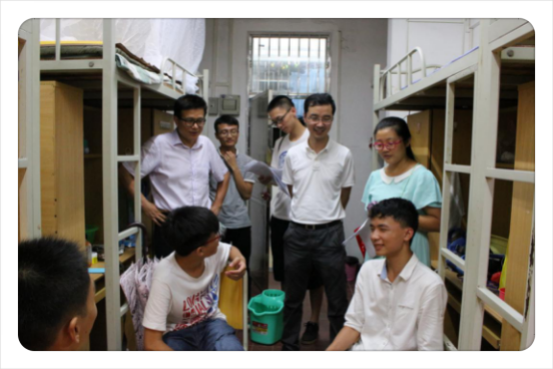 新生入学第一晚,学院杨东华书记,姚道新副院长,郑跃副院长,潘金山副书记和辅导员老师们,亲切看望了刚刚入住宿舍的新生,在送去关怀和关心的同时为新生们答疑解惑,让新生们感受到了浓浓的学院大家庭氛围。