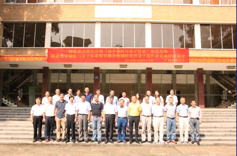2016年10月6—7日,由中山大学王雪华教授主持、联合北京大学、中国科学技术大学、北京邮电大学共同承担的国家重点研发计划“量子调控与量子信息” 重点专项—“固态光学微腔与量子体系相互耦合的调控及其量子器件研究”项目启动会在广州中山大学南校区顺利召开。