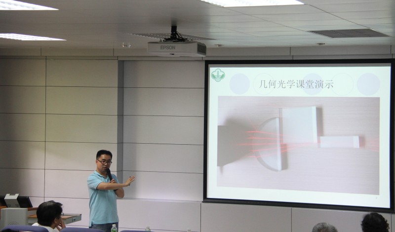 董建文教授(教育部青年国家级人才项目学者、国家优秀青年基金获得者)现场展示了光的偏振教学内容。并结合亲身经历,讲述从事教学工作以来心态和能力的变化。如何被动转为主动,结合生活和前沿科技,做到形象化教学。董教授认为“严格要求学生才是善待学生”。提到教育工作最需要的是自豪感,为学校,为工作,为学生感到自豪。