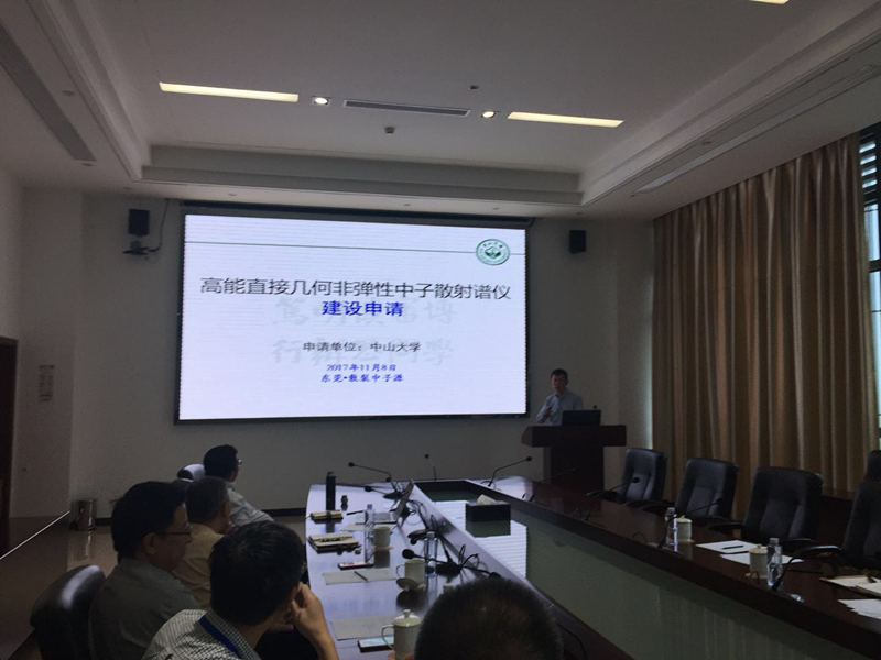2017年11月9日,物理学院郑跃院长、姚道新副院长、王猛教授赴东莞市中国散裂中子源与中国科学院高能物理研究所东莞分部洽谈中子散射谱仪建设事宜。高能所副所长、东莞分部主任陈延伟研究员、陈元柏研究员、王芳卫研究员、贾学军研究员、梁天骄研究员、程贺研究员对物理学院一行人员热情接待,双方热烈讨论、深入交流了意见。物理学院首次明确提出建设高能直接几何非弹性中子散射谱仪的计划。陈延伟、陈元柏、王芳卫等研究员表示该谱仪符合中国散裂中子源规划,中山大学有基础、有实力,适合该谱仪的建设,建议我院近期参加散裂中子源经理部和科技委会议答辩。