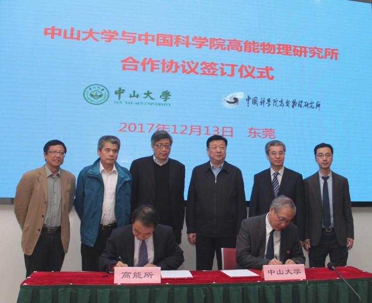 12月13日,中山大学—中国科学院高能物理研究所合作协议签订仪式在东莞“中国散裂中子源”园区举行。中国科学院高能物理研究所(以下简称“高能所”)所长王贻芳院士和我校校长罗俊院士代表双方在合作协议上签字。中国散裂中子源工程总指挥陈和生院士、高能所党委书记潘卫民、高能所副所长陈延伟以及我校常务副校长孙冬柏、校长助理邰忠智、物理学院院长郑跃证签。高能所及我校科学研究院、国家超级计算广州中心、物理学院、材料学院、化学学院、社会学与人类学学院、附属肿瘤医院、附属第六医院等有关负责人、专家共40余人出席仪式。