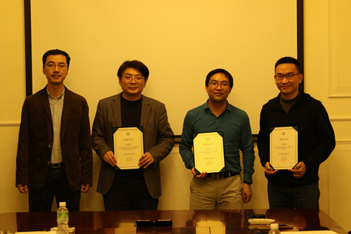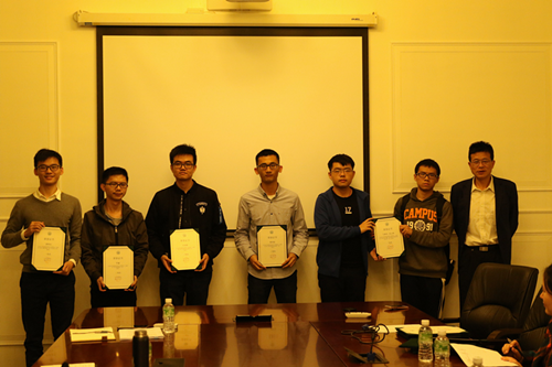 2018年1月4日中午,在十友堂107会议室举行2017届本科生基地班科研训练项目优秀学生和指导教师颁奖仪式。郑跃院长,杨东华书记,姚道新副院长,曲翔副书记,王为院长助理、王猛院长助理出席活动并为获奖师生颁奖。本次活动中就2017届基地班教学、科研的开展情况,以及学院对于本科生科研训练、学术发展等问题进行了总结和展望,希望师生们再接再厉,做出更好的科研成果。本届首次推出了“优秀指导奖”,鼓励我院教师积极指导本科生科研训练项目。