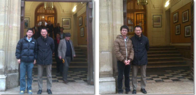 ▲李志兵与破格被巴黎高师录取为研究生的原巴黎高师班江云峰同学(左图)、李文亮同学(右图)在巴黎高等师范学院合照。