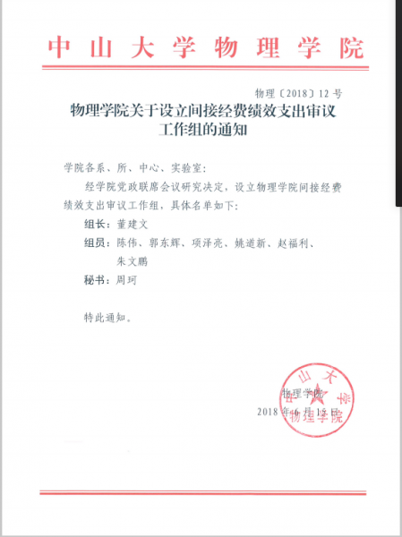 物理学院关于设立间接经费绩效支出审议工作小组的通知