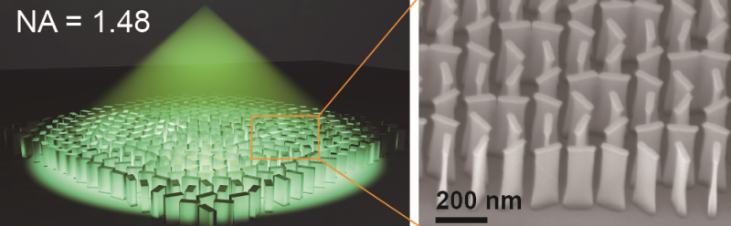 图1 高数值孔径超构透镜示例图及高纵深比微纳光学结构