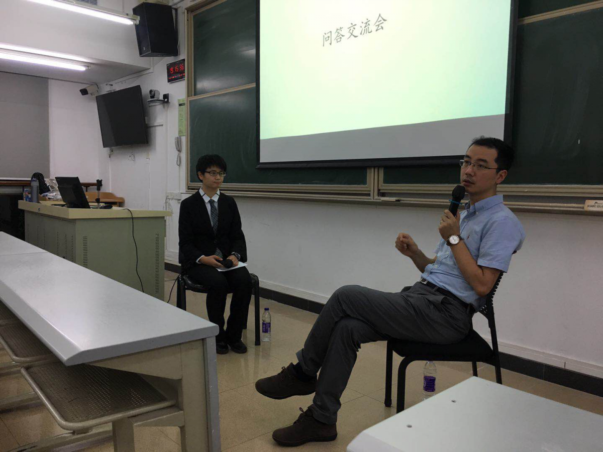 活动由2016级物理学专业本科生刘怡主持,院长郑跃教授与主持人畅谈,和学生们“面对面”对话,对物理学院的发展方向、物理学学子的学习目标、物理学培养体系,以及18级面临的诸如跨专业等问题进行了深刻的探讨。交流会中,郑跃院长指出,物理学院作为老牌的基础学科学院,与中山大学的改革脉络相映衬,一步步推动着世界一流学科的建设。近年来物理学院吸纳了众多的海内外人才,逐步完善科学的本科生培养体系,并进行了许多次教学实验和改革,提升了物理学院整体的竞争力。当问到本科生的学习态度时,郑跃院长以自身的经历为例,讲述了学生们应当“不畏声名、不贪繁华、不以奖学金和高绩点为学习目标”的精神,明确了本科生应以知识学习为重,多进实验室,多做研究,提高科研实力。克服学习疲软期,保持学习稳定期,开拓视野,成为新时代综合素质人才。同时,郑跃院长也表达了学院对于本科生教学工作和交流项目的高度重视,“只要学生想学,物理学院就可以投入资金和力量。”