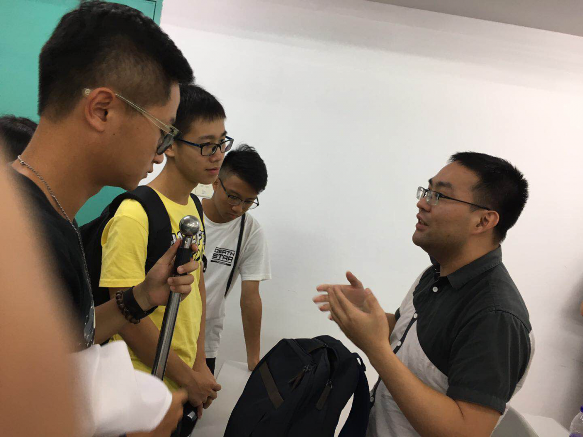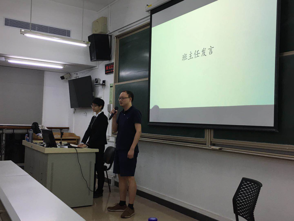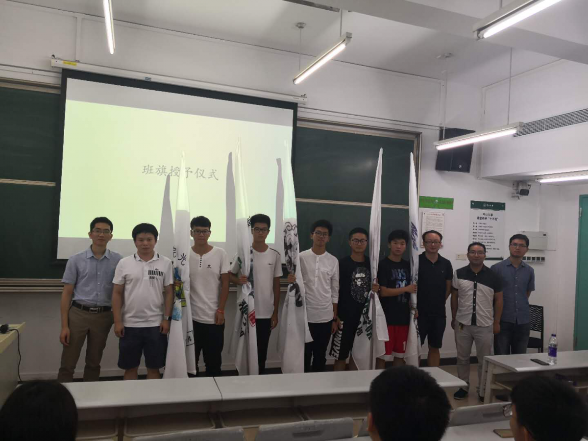 交谈会后,物理学院“誉侃”论坛也举行了启航仪式,五位班主任分别就自身的学习经历与同学们进行了分享和交流,表达了对18级新生的期许,阐述了自己的学业帮助理念,并与各班班长一起接领班旗。
