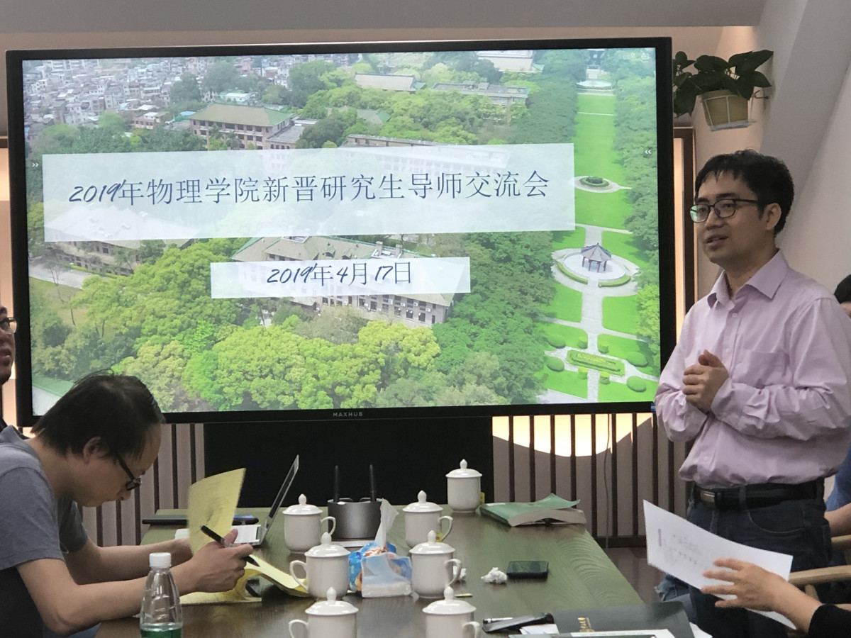 物理学院近三年来百人计划引进的25位教授、副教授,均成为新晋的博士、硕士生导师。围绕“立德树人”根本任务,为了继承和发扬物理学院人才培养的优良传统,更加深入细致做好研究生培养工作,提高研究生培养质量,建设卓越的研究生导师队伍,我院于4月17日召开了2019年物理学院新晋研究生导师交流会,二十余位新晋研究生导师、许东黎书记和曲翔副书记参加此次交流会,会议由院长助理董建文教授主持。