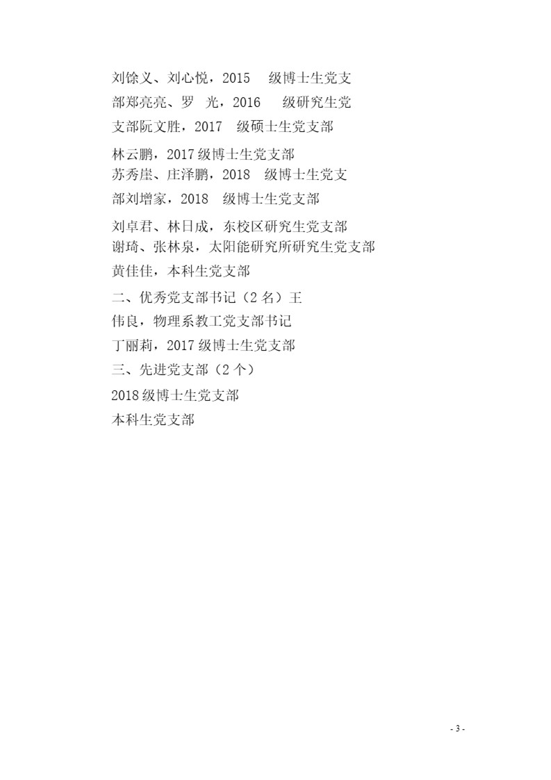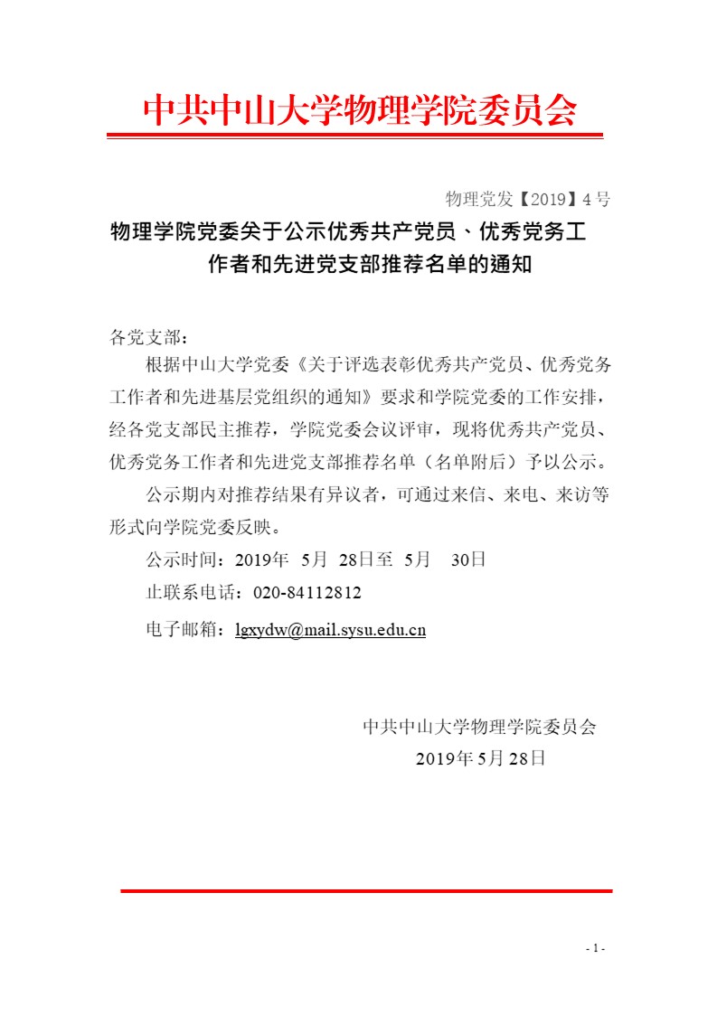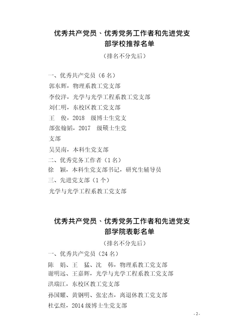 物理学院党委关于公示优秀共产党员、优秀党务工作者和先进党支部推荐名单的通知