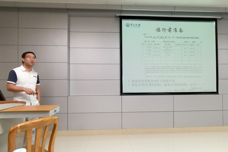 会上许东黎书记做了动员和部署。她强调一流的生源对于人才培养至关重要,希望学院每一位老师,无论是教授、副教授,还是研究员、博士后都能走进中学,开设与物理学相关的科普讲座,把优质生源吸引到中山大学,争取到物理学院。鼓励老师们每年至少安排一次时间,回到自己中学母校所在地或其他城市的至少两所重点中学,开展“物理大讲堂进中学”的讲座。