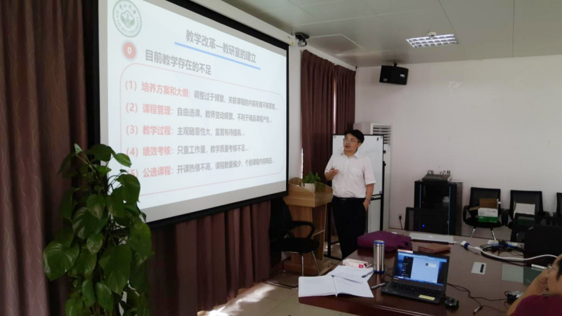 接着,物理与天文学院余聪院长助理作了题为《物理与天文学院教学介绍及公共平台课承担情况》的报告。公共物理教学部赵福利副主任报告了《其他高校<大学物理>的开课情况》。张勇副教授介绍了公共物理教学部的工作流程、题库建设和教材建设等情况。