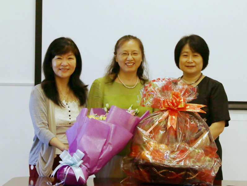 最后,许东黎书记、赵福利主席和蔡志岗主任分别代表学院、工会和实验中心为黄彩霞老师送上鲜花和纪念品。
