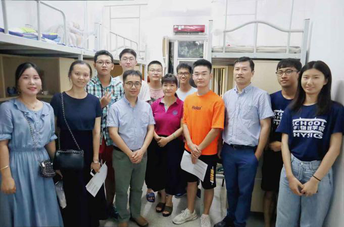 当晚,学院郑跃院长、姚道新副院长、许东黎书记、董建文教授、郭东辉教授、雷世菁辅导员及学长团代表前往本科生新生宿舍,问候新生,叮嘱新生不仅要重视学习,也要学会生活,有任何困难和烦恼可以去找老师们寻求帮助。并早日确定自己的志向,一定要珍惜在中山大学四年求学生活。