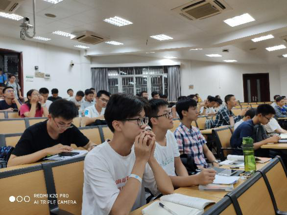 为推进党团班一体化建设,加强党组织与团组织和班级的联系、发挥实际的帮扶作用,本科生党支部在实际调查新生存在的对大学生活的疑问后,于2019年10月19日晚七点,在第一教学楼1207课室召开面向19级新生的经验分享会。本次分享会邀请了林锦根、王子豪、管小东、彭昭亮、范可舟、许伊欣六位来自物理学院大四的优秀学长学姐进行专业方向、大学生活规划、大学期间需要注意的制度和考核、大学期间学术与社团的平衡等议题进行了两个小时的讲解和答疑。