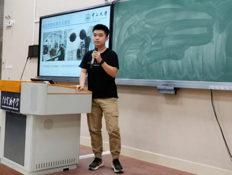 讲座最后,现就读于我学院2018级光电信息科学与工程专业本科生、省实2018届校友龚锐洋与师弟师妹们亲切交流,分享了自己在物理学院学习的感受,以及今年8月参加第十届全国大学生学术竞赛的经历和获奖体会,同时介绍了物理学院的创新实验中心,并鼓励省实优秀学子报考中山大学。
