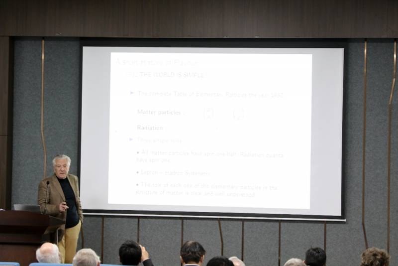 作为会议的开幕报告,大会邀请了国际知名的粒子物理专家、GIM机制的提出者之一的法国John Iliopoulos教授就题为Questions of Flavour发表了精彩演讲,系统地回顾了标准模型中各代夸克和轻子的发现历程,以及当前重味物理和精确测量等领域的研究热点,并与与会的师生进行了热烈的讨论。