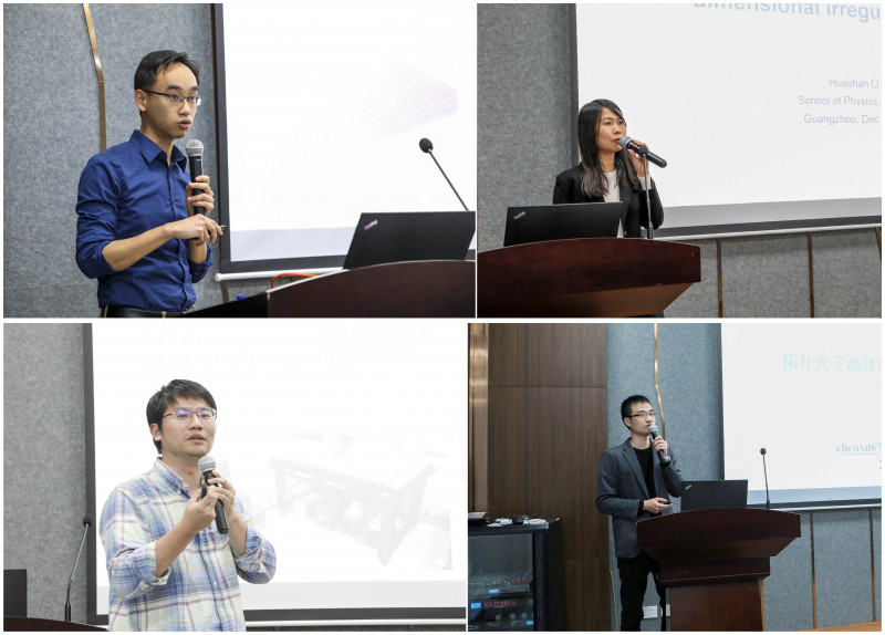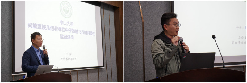 开幕式后,王猛教授就“中山大学高能非弹性中子散射谱仪建设进展”向与会人员做了情况介绍报告。在邀请报告环节,学院赖天树教授、洪瑞江教授、姚道新教授、钟定永教授、严忠波副教授、朱海副教授、周张凯副教授、陈伟教授、王为教授、李俊韬教授、朱文鹏教授、李华山副教授、陈晓东副教授、黄臻成等13名老师,就不同的学科方向学术前沿,以及前沿领域2019年最新研究进展、科研公共平台运行情况等方面进行了深入交流和广泛讨论。报告内容涵盖了凝聚态、光学、理论物理、高能物理、能源物理、软物质与生物物理等多学科方向。与会人员表示,对本次会议期待已久,能通过年会相互了解不同学科之间的研究成果,有利于未来的学科交叉;同时,对自己的研究领域也能提供新思路新视角。与会代表期待,学院未来科研工作中,能涌现更多院内合作的优秀科研成果。