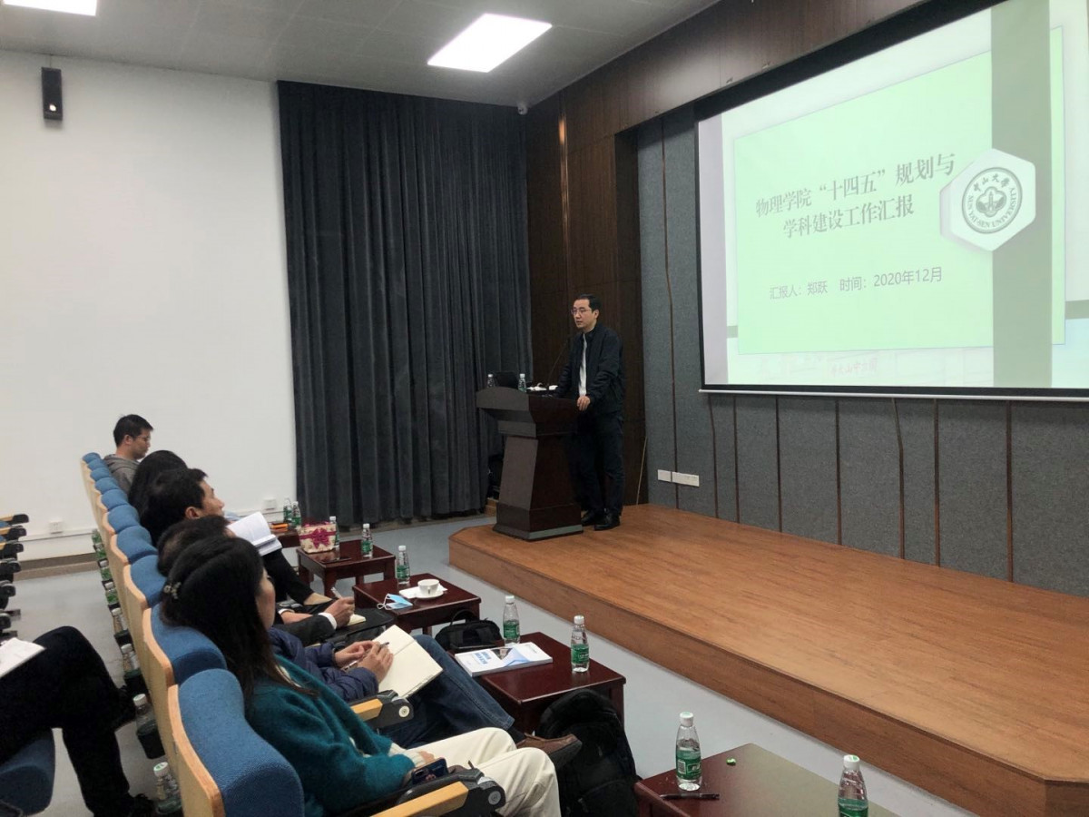 会上,郭东辉院长介绍了2020年学校秋季工作会议情况,并重点传达了罗俊校长题为《明确新目标 把握新机遇 开启一流大学建设新征程》的主题报告。郭院长指出,罗俊校长的报告从战略规划的角度,全面总结了学校新时期发展内涵,明确了未来五年的目标和发展路径,提出了“十四五”规划的主要原则和具体要求。他强调,学院做好“十四五”规划要正确理解和把握学校新方位、新格局、新时势、新挑战的发展特点,与学校同心同向同步同行,通过“一体系、一平台、一战略”的目标和“四位一体、一个引领、两个支撑”的思路,脚踏实地推进学院各项事业建设发展和物理学一流学科建设。