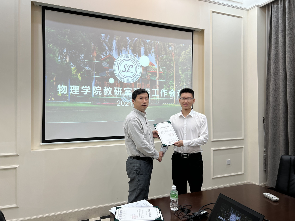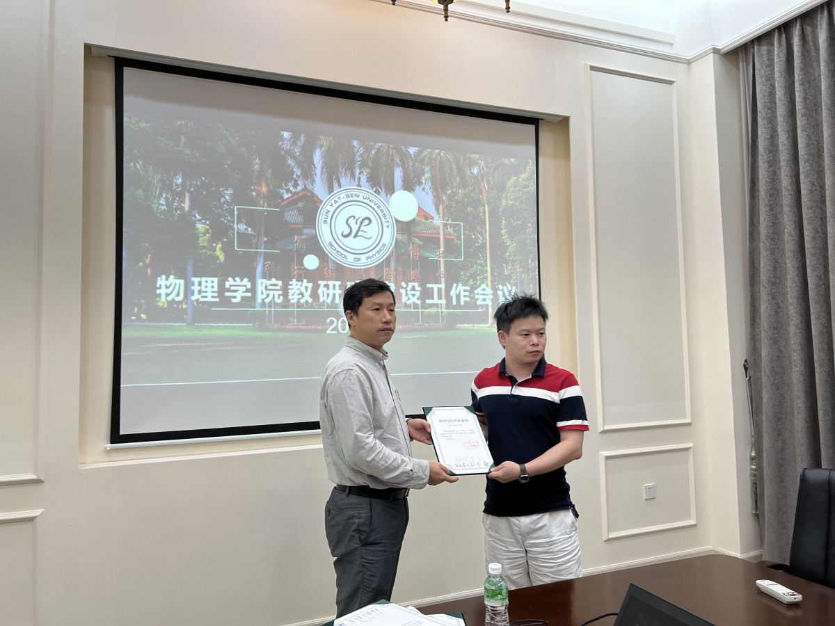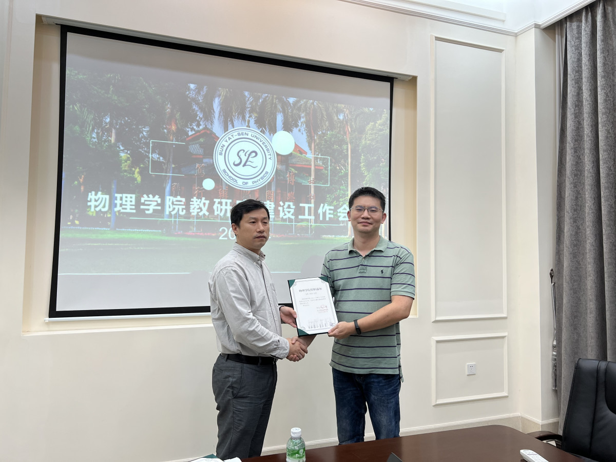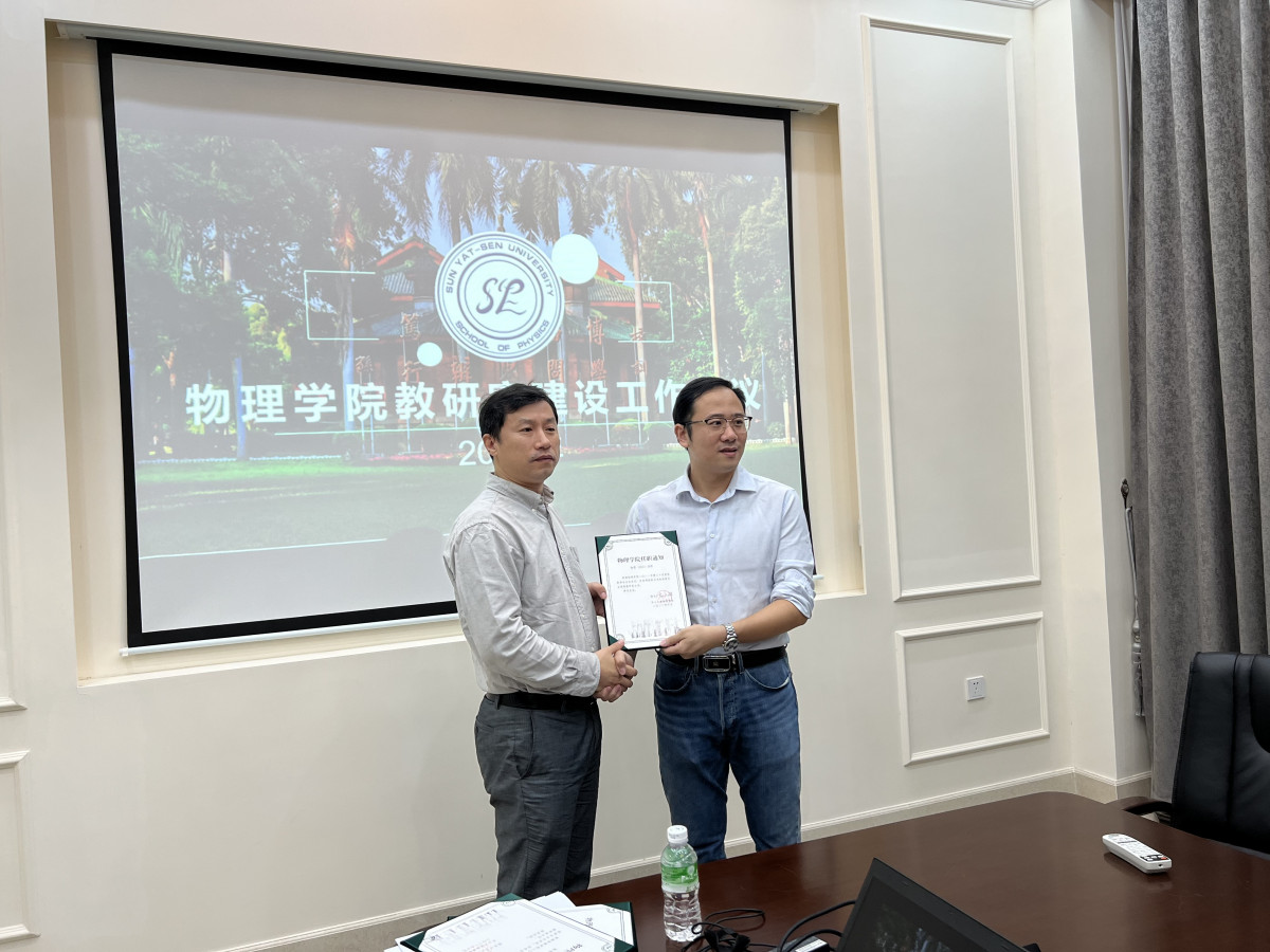 2021年10月13日,我院在十友堂111会议室召开了本科教研室建设工作会议。赵福利书记宣读学院任命文件,郭东辉院长为新任教研室主任及公共物理教学部主任、副主任颁发任命证书。参会人员结合2020学年第2学期学生评教结果、督导评教报告、本科教学信息反馈委员会完成的《物理学院本科课程评价报告》以及《中山大学物理学院教研室建设实施方案》对教研室工作以及如何持续提升教学质量进行了研讨。王猛副院长主持会议。