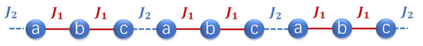 图1:一维反铁磁三聚体自旋链系统的示意图