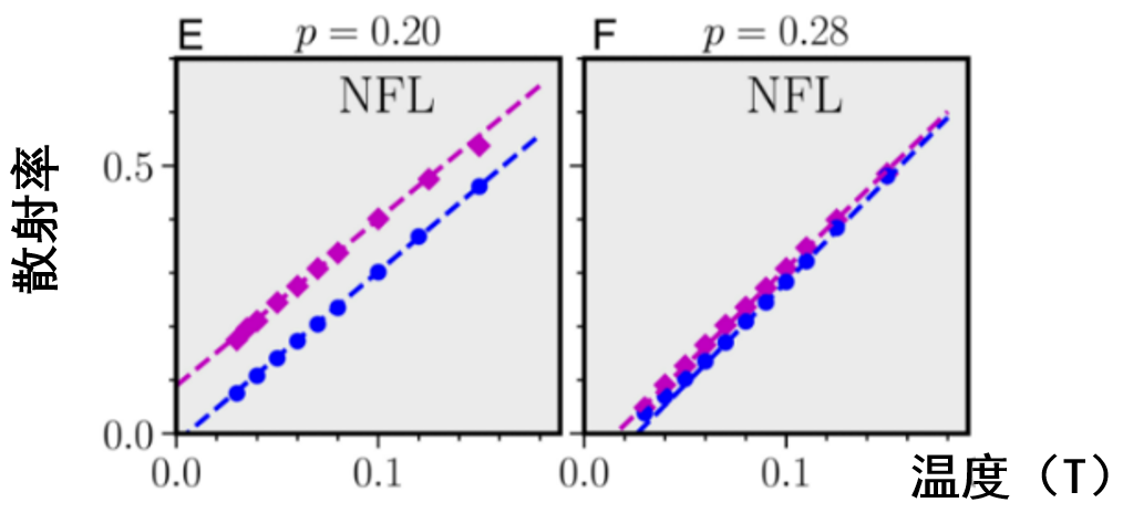 图(1):两种不同空穴掺杂下(20%、28%)电子散射率对温度的线性依赖关系
