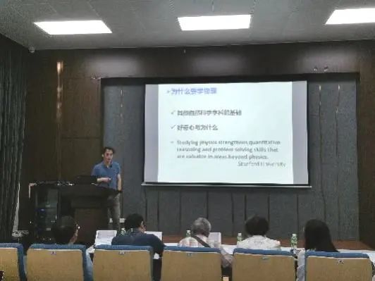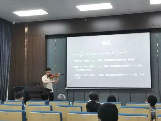周舟老师从“为什么学物理?”出发,指出了物理学是其他自然科学学科基础的特殊地位以及保持好奇心对于学习物理的重要性。汤亦蕾老师带来的是振动与波的演示。汤老师从振动和驻波的概念出发,介绍了影响振动的因素,通过现场演奏小提琴让大家对振动和波的理解更加深入,现场氛围十分活跃。王慧超老师讲解的是大学物理的磁学部分,重点介绍了经典霍尔效应的物理概念和在生活中的应用,同时介绍了量子霍尔效应和反常霍尔效应等科研热点问题。邬汉青老师带来的是《热学》课程中的温度部分,邬老师首先介绍了温度的基本概念、测温装置的发展过程以及常见温度计的类型和应用,最后指出理解温度这一基本物理概念的难点和重要性,引导同学们在学习中不断思考。