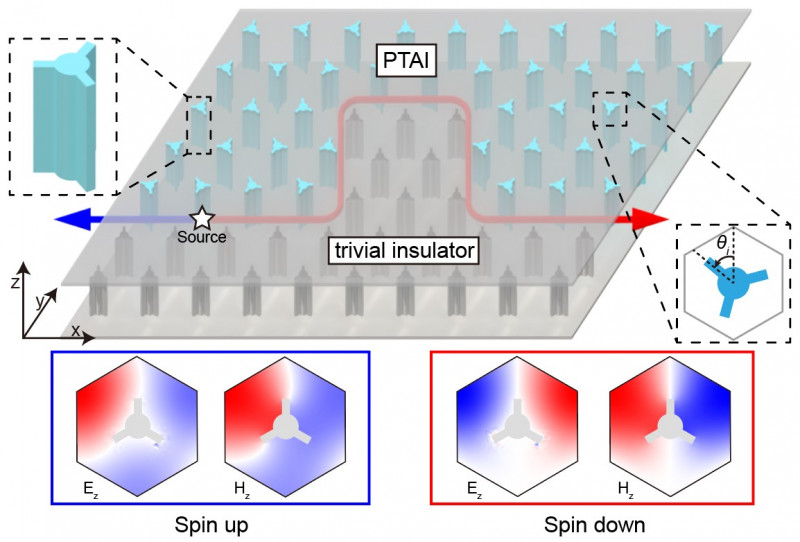图1 时间反演对称的光学拓扑安德森绝缘体示意图(图上方青色部分)。