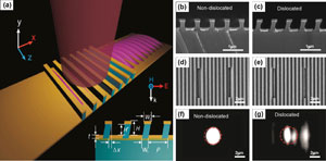 现代高速信息处理技术渴求超微型集成化的光子器件,表面等离子体光子器件可以克服传统光学中的衍射极限问题,在纳米尺度下对光信号进行局域、传导和调制,因此被视为通往超集成化光子回路的一条捷径。然而,将表面等离子体器件引入到光学系统中,必须面对一个关键问题:如何高效地将自由空间中传播的光波耦合到金属表面形成方向可控的表面等离子体波?虽然传统光栅可以实现这一目的,但垂直入射的光束会被同时耦合进沿两个相反方向传播的表面等离子体波。尽管可以通过斜入射光束来实现单向传播的表面等离子体波,但在大多数光学系统中,正入射耦合具有更多的优点。最近,光电材料与技术国家重点实验室、物理科学与工程技术学院金崇君教授领导的研究组和斯坦福大学Prof. Shanhui Fan 领导的研究组合作,指导博士生沈杨、硕士生刘天然和Dr. Wonseok Shin等提出一种基于错位双层金属光栅结构的单向表面等离子体耦合器(如图a所示)。由于打破了空间结构对称性,这种错位光栅结构可以实现正入射下的高效单向表面等离子体波耦合,并且具有易于设计、可扩展以及尺寸小等优点。经过优化,发现包含仅7个周期的双层金光栅可以达到78的单向比和49%的耦合效率。基于结构的周期性,他们提出了通过双光束倾斜曝光结合倾斜金属沉积以及聚焦离子束刻蚀的方法来制备这种错位双层金属光栅结构(如图c, e所示)。并在实验上演示了在一个聚焦的高斯光束照射下(中心波长为895 nm)高达43和36%的单向比和耦合效率(从图g中可以看出,大部分的光耦合到向右传播的表面等离子体波中), 而相应的无错位双层金属光栅仅仅看到一个反射光斑,无横向耦合(图f)。更为重要的是,他们在理论上用一个简单的解析模型解释了这种单向耦合的机理,为结构参数的优化提供了一个非常简洁明晰的途径。相对于此前报道过的准周期表面等离子体耦合器,这种结构在设计和制备上都更加简单,并且在实验上表现出非常优异的单向耦合性能,表明该双层金属光栅结构在表面等离子体集成光路中具有十分重要的应用价值。该研究成果于6月13日发表在国际知名刊物Nano Letters上(Nano Letters 14, 3848(2014)). 其中一个审稿人写道: "......I was impressed by its combination of numerics, design, experiment /fabrication and simple analytics. The results are impressive and should be useful in the design of plasmonic circuits ..."而另一个审稿人认为:"The present work distinguishes itself not by the achievable coupling efficiency, but by other factors relating to ease of fabrication ......"。近三年金崇君教授研究组在表面等离子体纳微结构器件的研究上已发表了多篇高水平研究论文,其中包括 Nature Communications 4, 2381(2013); Nanoscale 6(13), 7237(2014); Nanoscale 4(7), 2255(2012); Nanoscale 4(18), 5576(2012)等。